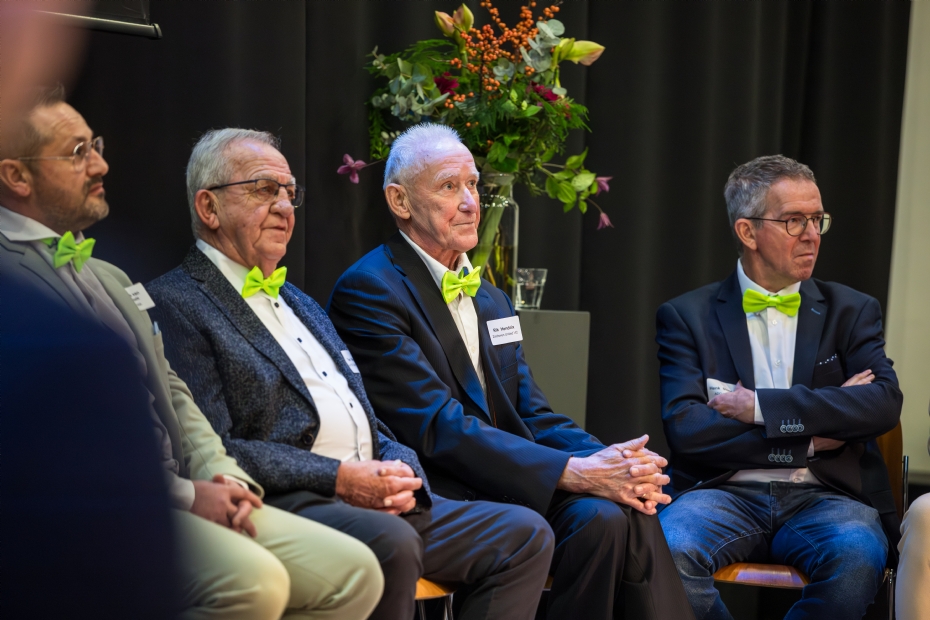 Naborrelen met diverse oud deelnemers en winnaars van de verschillende verkiezingen, zoals Bas Franssen (Husqvarna Fieldmanager of the Year 2024).