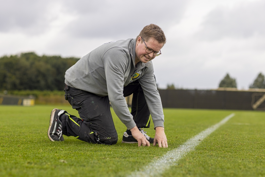 Hoe komt een afgestuurde bouwtechnisch tekenaar, die twaalf jaar op kantoor heeft gezeten, in het onderhoud van grasmatten terecht? 'Meer dan vijftien jaar geleden was er een bouwcrisis en kwam ik op straat te staan. Toen ben ik mijn vader gaan assisteren, die destijds grasmeester was bij NAC. De velden waar NAC traint, waren vlak bij het huis van mijn ouders. Ik hielp toen ook weleens mee als ik vrij was. Toen er meer trainingsvelden bij kwamen, kon mijn vader wel wat assistentie gebruiken, en zo ben ik erin gerold. Ik vond het werk erg leuk en van het een kwam het ander. Mijn vader, die al veertig jaar in het vak zit, was een goede leermeester. Ik leerde veel in de praktijk, keek goed rond en stak dingen op van collega´s. Zo werd ik steeds beter. Ik ben dus eigenlijk helemaal selfmade.´