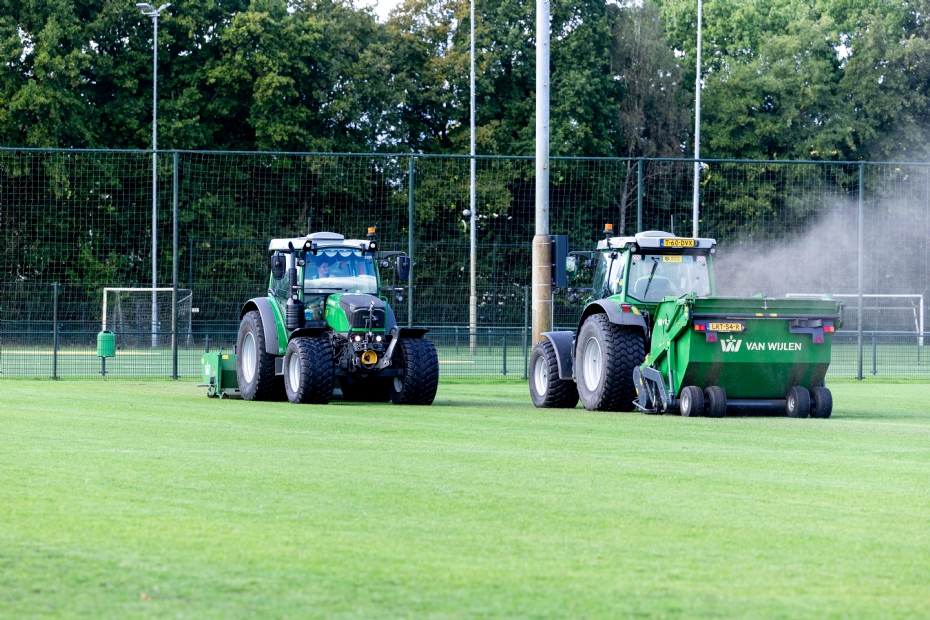 |  |  | 'Wij brengen gebiedskennis in, historische data, financiële middelen en de verbinding met beleid en sportregie, de opdrachtnemer kennis, materieel, mensen en ervaring. |  |  |  |  |  Kansen: slim veldgebruik, innovatie en vernieuwingDe sportparken in Eindhoven liggen midden in de stad. De druk op de ruimte is groot, terwijl de wachtlijsten van verenigingen groeien. Op 't Hoog: 'Uitbreiding is geen optie, dus wordt ingezet op intensiever en slimmer gebruik van bestaande velden. Onze ambitie is een betere balans tussen natuurgras en kunstgras. We gaan van grofweg 40 natuurgras- en 20 kunstgrasvelden naar een verhouding van ongeveer fiftyfifty. We zoeken ook naar oplossingen om sportvelden voor andere doeleinden in te zetten. Zo werken we aan het combigebruik van velden voor cricket en voetbal, aan energieopwekking op kunstgras, en zijn we bezig met de aanleg van peilgestuurde drainage om hemelwater zo lang mogelijk vast te houden.'RobotsDe komende jaren staan in het teken van vernieuwing. In 2026 wil Eindhoven robotmaaiers invoeren. 'Dat vraagt veel afstemming binnen de betrokken schakels, onder andere over de bezettingsplanning, en betrokkenheid van verenigingen. Clubs kunnen meehelpen door de velden vrij te houden. We kijken daarom ook naar gedragsaanpassingen: trainen in de breedte, wisselen van doelen, dat soort simpele, maar effectieve maatregelen.' Er komen ook negen nieuwe kunstgrasvelden en vijf SBR-infill-velden worden omgebouwd naar velden met mineral infill. Verder wordt het onderhoud structureel verbeterd door frequenter doorzaaien, betere onkruidbestrijding en slimmere beregening. 'Dat doen we met het bouwteam voor natuurgrasonderhoud binnen een raamcontract voor de kunstgrasvelden, door te investeren in samenwerking, elkaars kracht te benutten en ons te blijven ontwikkelen.'