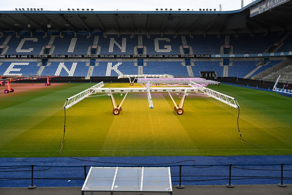 Slim bouwen aan sterke veldenDe groei van het grasteam van KRC Genk is niet alleen zichtbaar in organisatie en werkwijze, maar ook letterlijk in de bodem onder het veld. De club investeert de laatste jaren fors in infrastructuur en opbouw van velden. 'Je kunt het beste team hebben, maar als de ondergrond niet goed is, loop je achter de feiten aan,' zegt Eddy van Endert.Het stadionveld krijgt waarschijnlijk in 2027 een grondige renovatie. De bolling — ooit aangelegd om regenwater naar de zijkant af te voeren — wordt drastisch verminderd. Waar nu nog een hoogteverschil van 34 centimeter tussen middenstip en zijlijn zit, wordt dat teruggebracht naar 8 à 10 centimeter. 'Die oude manier van bouwen is achterhaald. Water zakt naar beneden, niet naar de zijkant.' Tegelijkertijd wordt de drainage volledig vernieuwd en aangepast aan moderne standaarden. Ook de randzones worden aangepakt, inclusief nieuw kunstgras rondom. De renovatie is geen op zichzelf staand project. Op de jeugdvelden is de afgelopen jaren al stapsgewijs gewerkt aan modernisering. Ooit waren die velden aangelegd op vettige grond zonder drainage of degelijke sproei-installatie. Nu ligt er overal drainage en beregening, en is de opbouw verstevigd met honderden tonnen zand per veld. 'We hebben die velden als het ware uitgekleed en opnieuw opgebouwd. Dat merk je meteen in de speelkwaliteit en belastbaarheid.' Gravel carpet Daarnaast komt er een nieuw trainingscomplex, waar de drainage volgens de Engelse gravel carpet-methode wordt aangelegd. Deze aanpak zorgt voor een snellere afwatering en een constantere ondergrond. 'Het is een investering, maar wel eentje waar we jaren mee vooruit kunnen.' De uitvoering van dit project is uitbesteed aan het Franse Natural Grass. Het inprikken van de vezels komt bij Grasmax te liggen. Van Endert: 'Voor de toplaag van het nieuwe trainingscomplex gaan we werken met 85% zand en 15% organisch. Dat is iets rijker dan gebruikelijk in Engeland. Vooral omdat we hier minder stikstof en water kunnen geven. Zo creëren we meer vochtvasthoudend vermogen.' Op welke manier we die 15% willen invullen, dus met welke materialen, is nog een punt van discussie. Licht Van Endert benadrukt dat deze infrastructuur de basis vormt voor het werk van zijn team. 'Goede mensen en goede plannen zijn belangrijk, maar zonder een goed veld kun je niet leveren. Dit is de fundering waarop we verder bouwen.' Naast infrastructuur zet KRC Genk volop in op technologie om de kwaliteit van de grasmat te sturen. Verlichting speelt daarbij een sleutelrol. Eddy van Endert werkt met installaties van drie leveranciers: Stogger, Rhenac en SGL. Samen dekken ze ongeveer 3000 vierkante meter van het stadionveld af. Van Endert was wereldwijd de eerste die op grote schaal met Stogger in zee ging. De keuze was bewust: de constructie is licht, goed hanteerbaar en Stogger werkt als een van de eersten in de markt met multispectraal licht. 'Stogger bood voor ons de beste combinatie van technologie en praktische inzetbaarheid,' zegt hij. 'Stogger bood ons drie kleuren aan: Horti White, Red en Far Red. Far Red heb ik om laten zetten naar Blue vanwege het effect op de wortel.' HPSOok Rhenac levert multispectrale units, maar de units van Rhenac zijn in de visie van Van Endert veel lastiger te verplaatsen. De systemen van SGL zijn degelijk, maar beperken zich tot één lichtkleur.In het verleden werkte Genk vooral met HPS-lampen (hogedruknatriumlampen). Die hebben als voordeel dat ze snel effect geven: na drie dagen is de groei zichtbaar. Maar ze stimuleren vooral opwaartse groei en verbruiken relatief veel energie. LED-systemen zijn veelzijdiger: ze sturen niet alleen de lengtegroei, maar ook wortelvorming en horizontale spreiding. Het effect is minder snel zichtbaar — pas na twee à drie weken — maar het resultaat is duurzamer. 'Met LED bouw je aan een sterker veld doorheen het seizoen,' zegt Van Endert. 'Het vraagt wat meer planning, maar op termijn krijg je meer terug.' Als Van Endert nu vanaf het begin zou moeten beginnen, zou hij nooit HPS-lampen meer kopen. Anderzijds wil hij ook geen afscheid nemen van die oude technologie. Vooral door die snelle werking en omdat je al in drie dagen resultaat ziet. Gray LeafWaar verlichting vooral helpt bij herstel en groei, blijft ziektebestrijding een uitdaging. Al vijf jaar heeft Genk 's zomers te maken met gray leaf spot. Een relatief onbekende schimmel die goed gedijt bij warm en vochtig weer en elk jaar rond eind juli de kop opsteekt. 'We weten dat hij komt, de vraag is alleen wanneer en hoe hard hij ons raakt.'Het team heeft de aanpak jaar na jaar aangescherpt: minder water, minder stikstof, kortere bladnatperiodes, ventilatie en gerichte inzet van UVC-licht. Wekelijks sturen ze monsters naar het lab van SGL en STRI. Preventief fungicidegebruik vermijden ze zoveel mogelijk om resistentie te beperken. 'We krijgen het steeds beter onder controle, maar het blijft een gevecht. Je wint het nooit helemaal, je moet het managen. Dit jaar hebben we in België een vijftal clubs last van gray leaf waarvan we het weten. In Frankrijk hebben bijna alle clubs er last van. Bij de vier grote — Paris Saint-Germain, AS Monaco, OGC Nice en het PSG-trainingscentrum — is het gigantisch.' De organisatie achter het veldonderhoud is de voorbije jaren professioneler geworden. Er is wekelijks overleg met de sportieve leiding en er liggen meerjarenplannen die tot in detail zijn onderbouwd met data. Beslissingen over investeringen neemt het grasteam zelf, maar altijd met een duidelijke uitleg richting bestuur. 'Als je kunt aantonen waarom iets nodig is en wat het oplevert, krijg je vertrouwen. Zo is het gegroeid.' Die aanpak vertaalt zich ook in de manier waarop Genk naar de toekomst kijkt. Belangrijk project is de aanleg van het nieuwe trainingscomplex, waar dezelfde veldopbouw en kwaliteitsstandaard komt als in het stadion. Daarmee wil de club alle speel- en trainingsvelden naar één niveau brengen. 'We willen dat onze sp